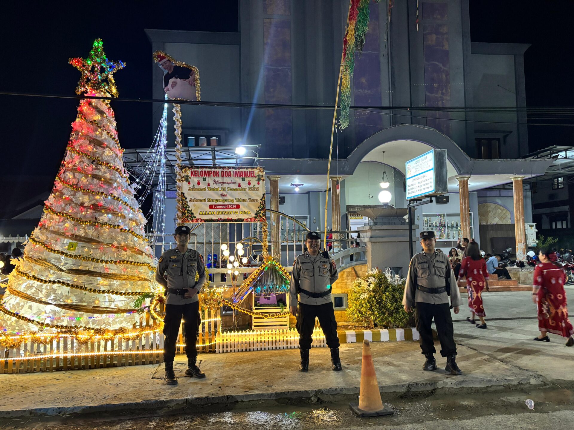 Pengamanan dilakukan untuk memastikan rangkaian ibadah berjalan lancar, khusyuk, dan aman bagi jemaat. Ibadah dipimpin oleh Pdt. Desefentison W. Ngrir, M.Th.
