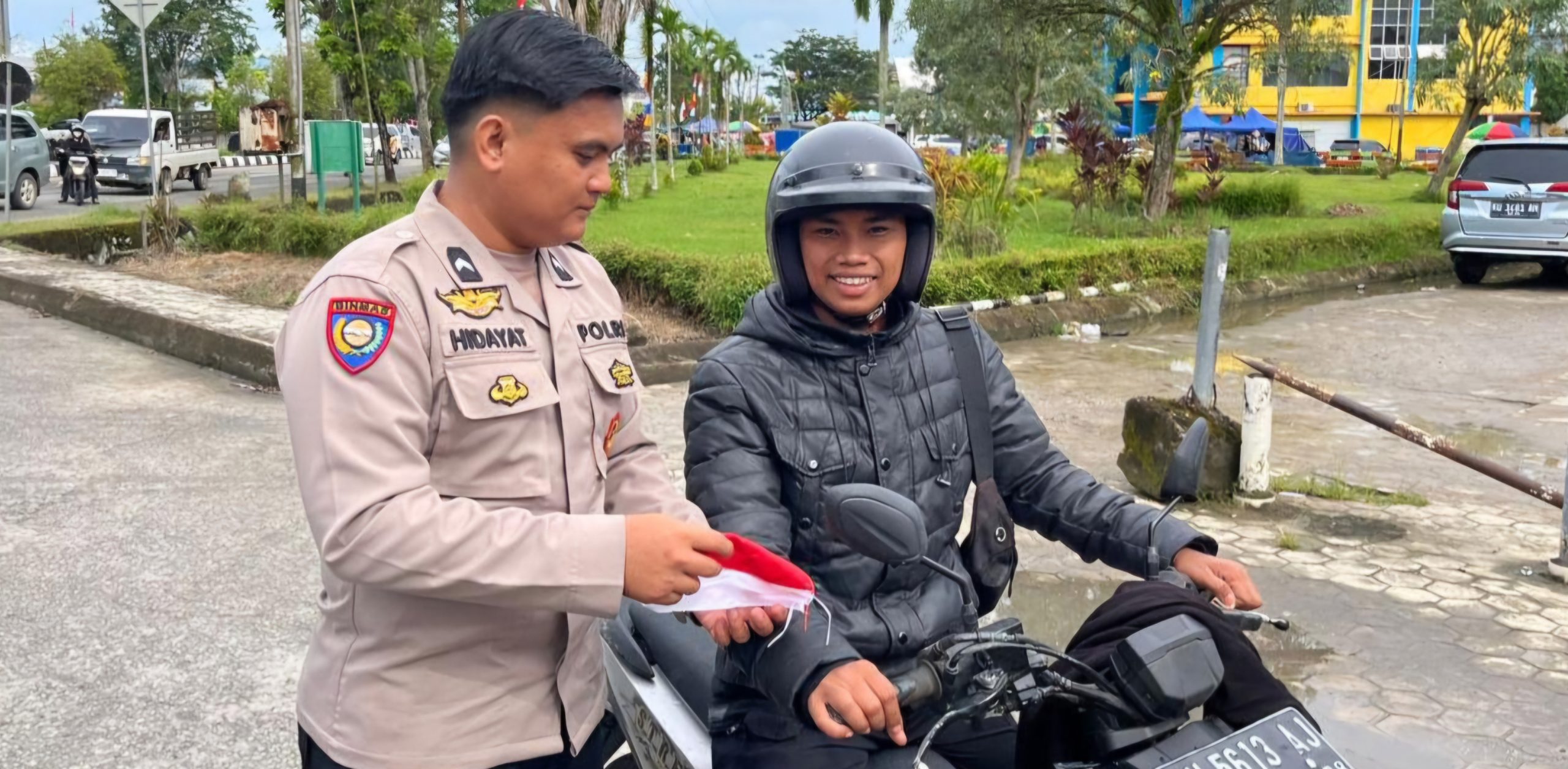 Meriahkan Kemerdekaan, Polisi di Bulungan Bagikan Bendera Merah Putih Gratis di Berbagai Titik