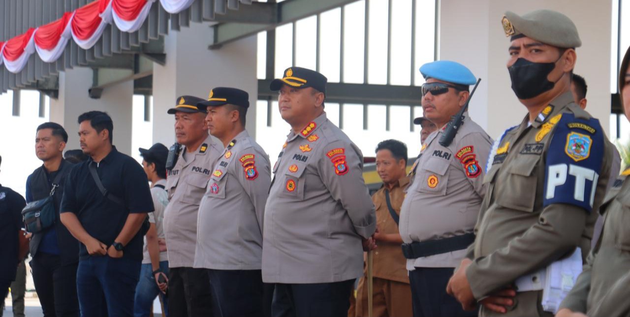 Aparat keamanan dari Polresta Bulungan tampak berjaga di sekitar area Kantor Gubernur dengan pendekatan yang humanis dan persuasif untuk memastikan jalannya aksi berlangsung damai tanpa gangguan.