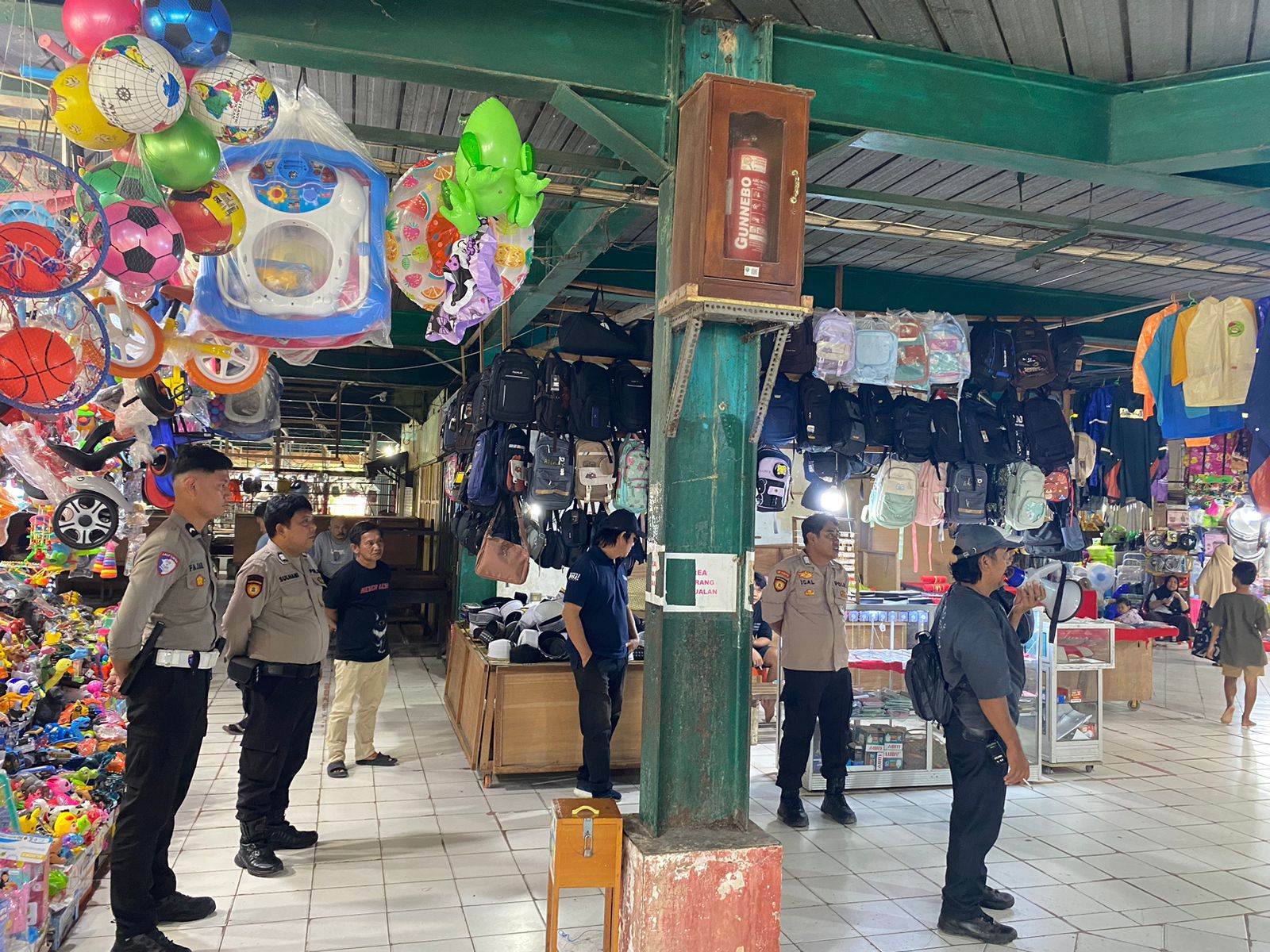 Di lokasi tersebut, personel kepolisian tidak hanya melakukan pengawasan terhadap aktivitas jual beli, tetapi juga memastikan situasi tetap kondusif di tengah meningkatnya mobilitas masyarakat. Petugas tampak melakukan patroli rutin di area pasar guna mengantisipasi potensi gangguan keamanan, seperti pencopetan maupun tindak kriminal lainnya.