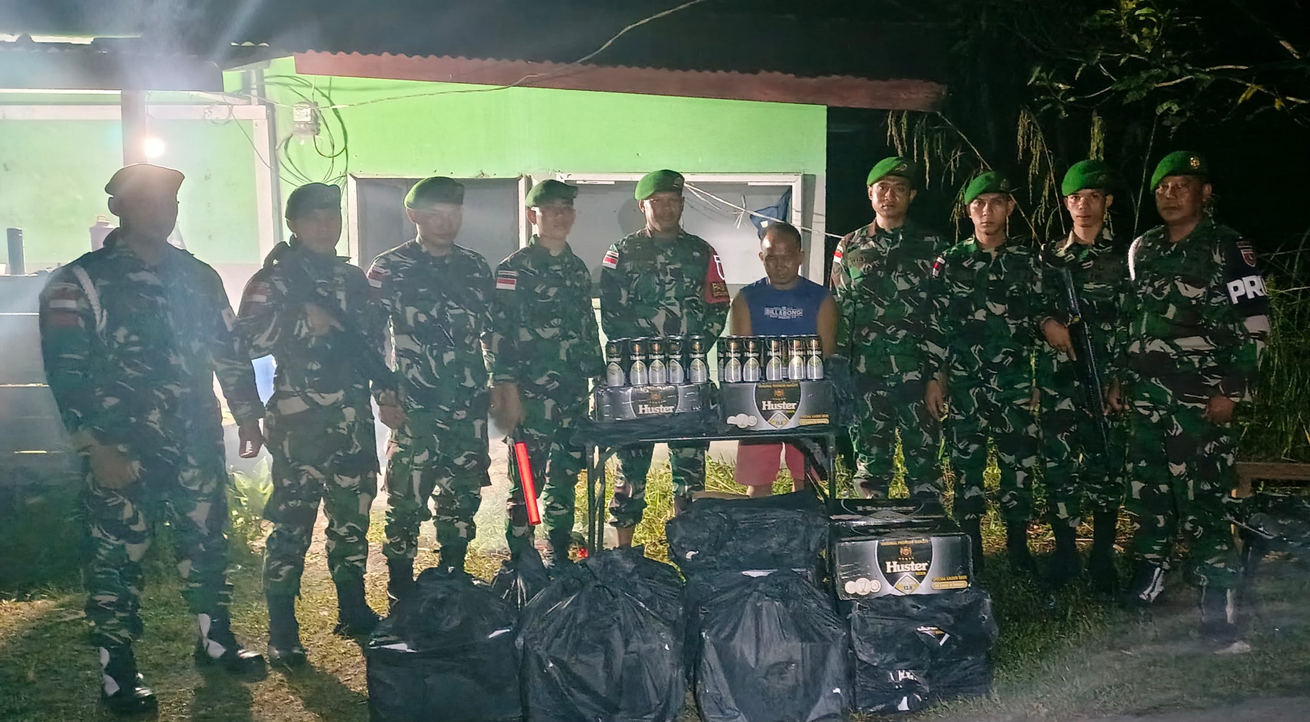 Malinau – Satgas Pamtas RI-Malaysia Yonzipur 8/SMG kembali menunjukkan komitmennya dalam menjaga keamanan wilayah perbatasan. Dalam operasi sweeping yang dilaksanakan pada Selasa dini hari sekitar pukul 04.00 WITA di Jalan Malinau, Desa Salap, Kecamatan Malinau Utara, Kabupaten Malinau, tim dari Pos Komando Taktis (Kotis) berhasil menyita 360 botol minuman keras (miras) ilegal merek Huster.
