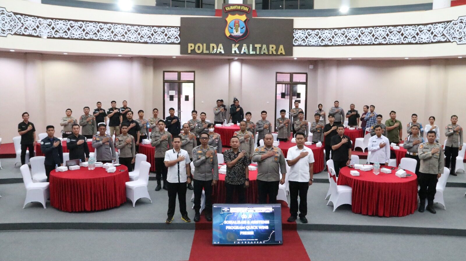 TANJUNG SELOR – Tim Posko Presisi Mabes Polri yang dipimpin oleh Kabag Duknis Rotekinfo Div TIK, Kombes Pol. Dr. Hariwiyawan Harun, beserta rombongan melaksanakan kegiatan Sosialisasi dan Asistensi Quick Wins Presisi. Acara ini berlangsung di Ruang Rupatama Bhara Daksa Polda Kaltara pada hari Kamis (11/12/2025).